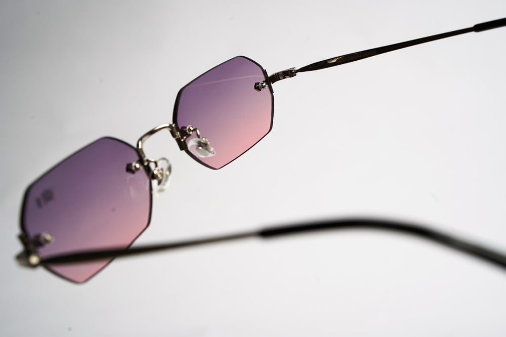 • تحتوي النظارة على إطارات معدنية.